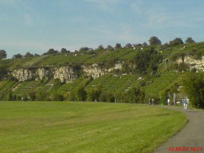 Nach dem recht frühen Aufstehen habe ich bis 15 Uhr telefoniert, das Buch zu Ende gelesen (könnte jetzt Buchtipps gebrauchen), Kaffee getrunken... Dann habe ich mich endlich auf mein Fahrrad geschwungen und bin den Neckarradweg bis Marbach gefahren. Dort habe ich mir bei Aldi Wasser und ein Sandwich gekauft, und auf dem Weg zurück vertilgt. Um 19:30 Uhr war ich dann wieder von der schönen Tour zurück, habe gegessen und bin darauf gleich eingeschlafen. Um 23 Uhr bin ich wieder aufgewacht und musste mich auch gleich fertig machen, da ich Martial abholen sollte (letztendlich holte er mich ab). Wir waren dann noch im Lauras und im Rubens, wo noch eine Freundin von Martial zu uns stoß. Es ist dann auch recht spät geworden. Und nun noch ein paar Fotos von der Radtour: